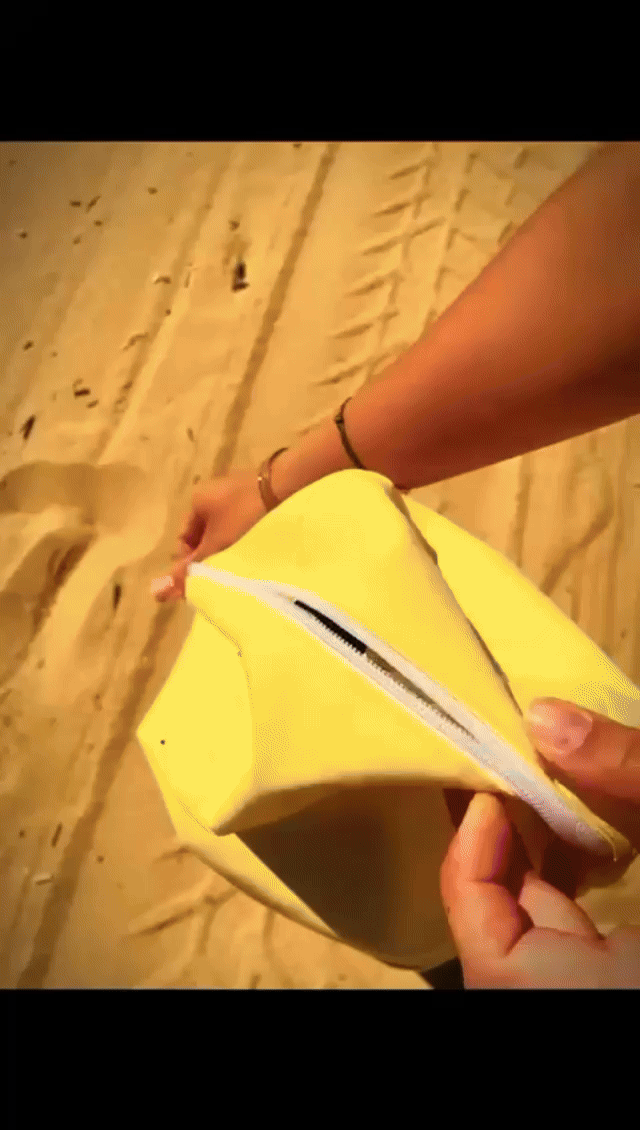 Grâce à son mât central unique et à quatre poches de sable qui font office d’ancrage, la Palapas se dresse sans effort ; le design a été pensé pour qu’une seule personne puisse l’installer en moins de deux minutes